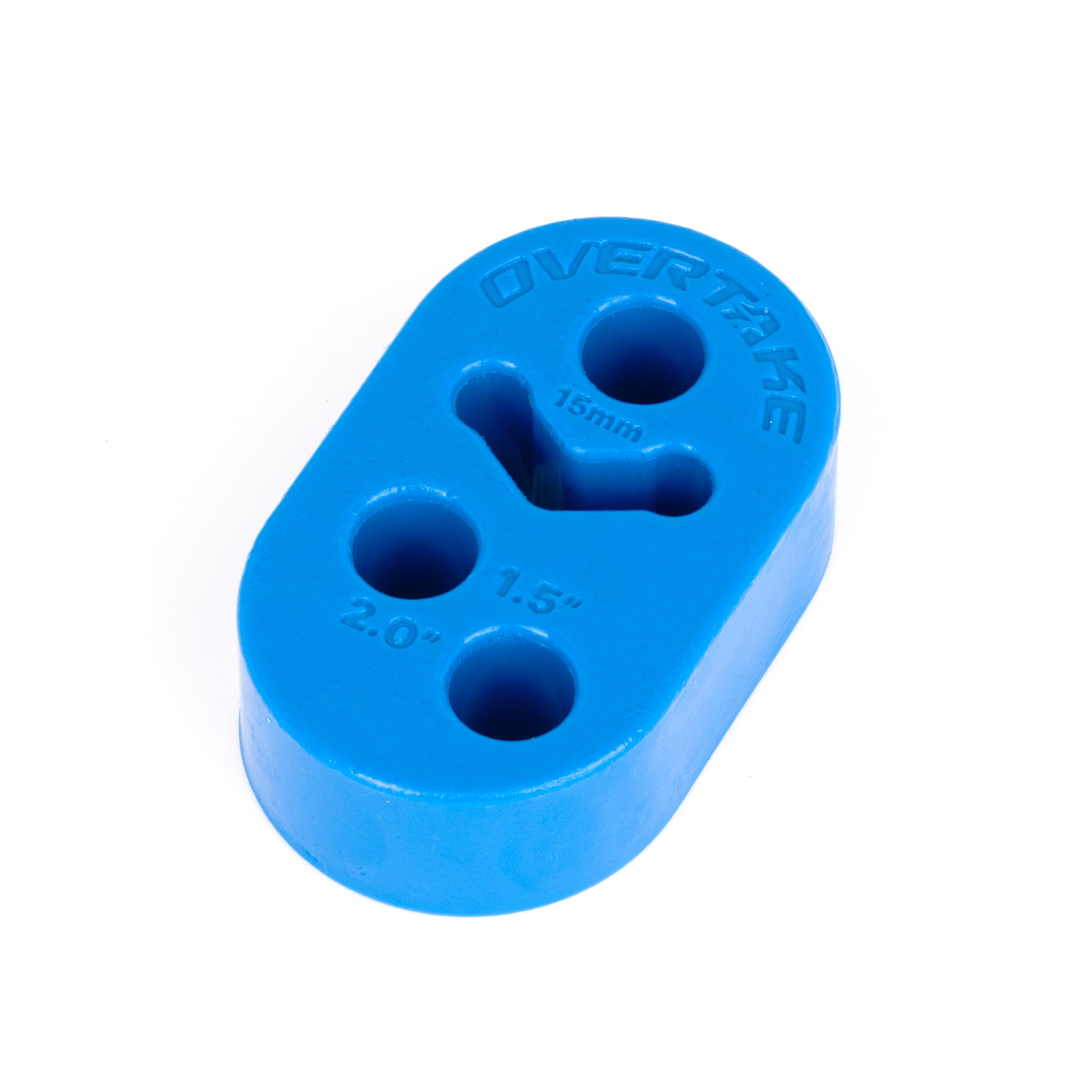 Molded from a striking blue 70A durometer polyurethane, Overtake hangers offer a substantial upgrade in rigidity over the factory rubber hangers, while still being pliable enough for a hassle-free installation. The 15mm hanger diameter is the perfect fit for most 1993-2007 Subaru models, especially the WRX, STI, and Forester XT!