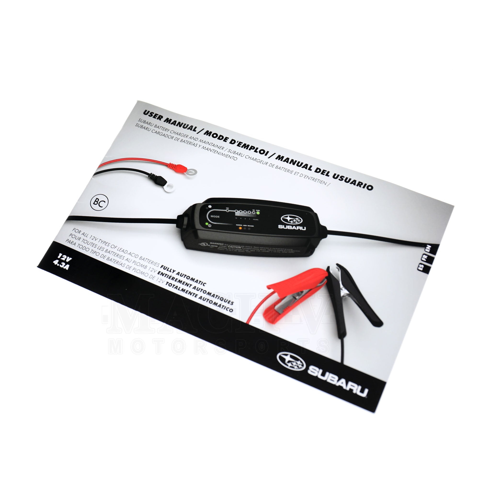 The fully automatic battery charger and maintainer by Subaru efficiently charges 12-volt lead acid batteries to maximize battery life and recondition flat batteries. SUBARU Battery Charger & Maintainer is a switching-mode charger with both float and pulse maintenance. This charger represents the latest technology within battery charging.